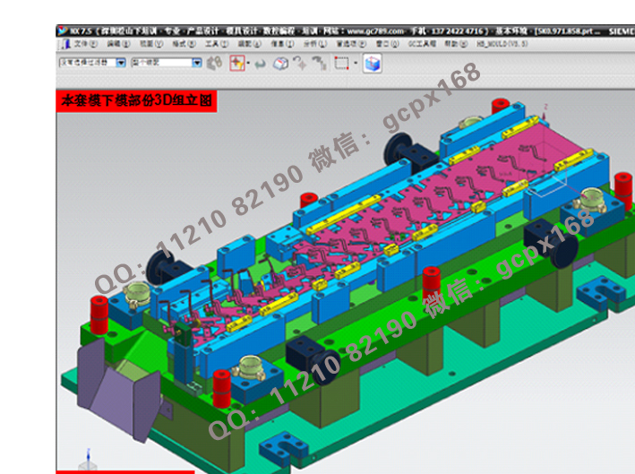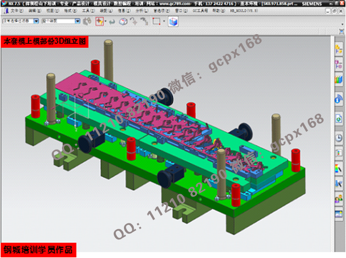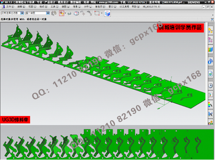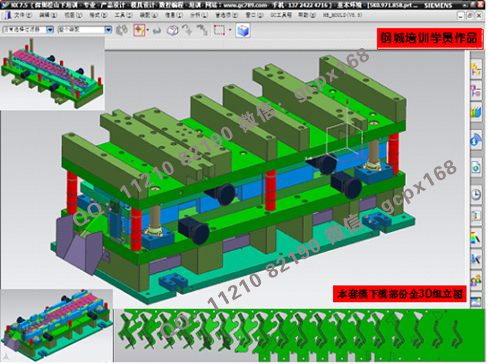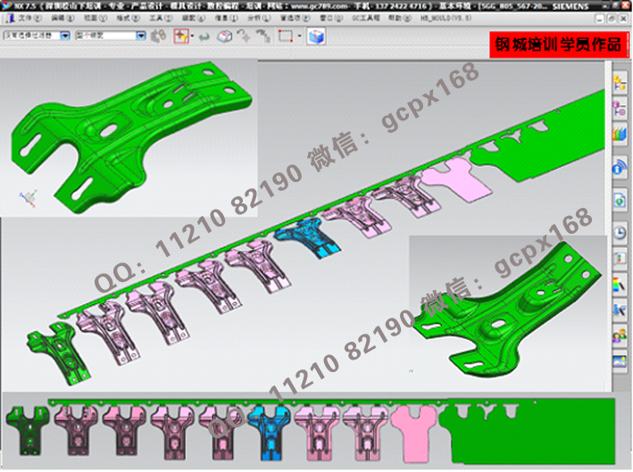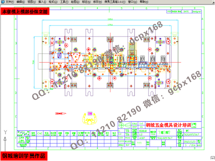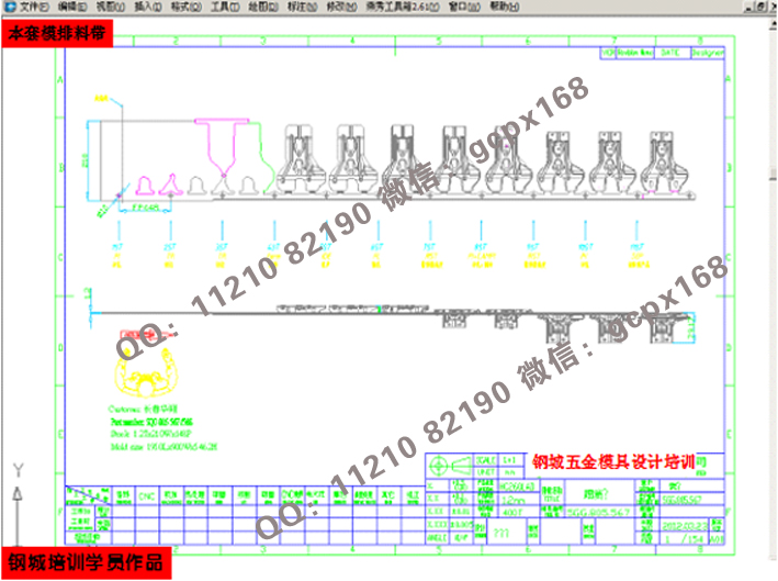 (11)    連續模設計實操:綜合理論知識,運用實際的模具設計流程(各類圖面處理>模架繪制>細部結構設計>零件圖繪制>出圖),真正實現與工廠的無縫結合;